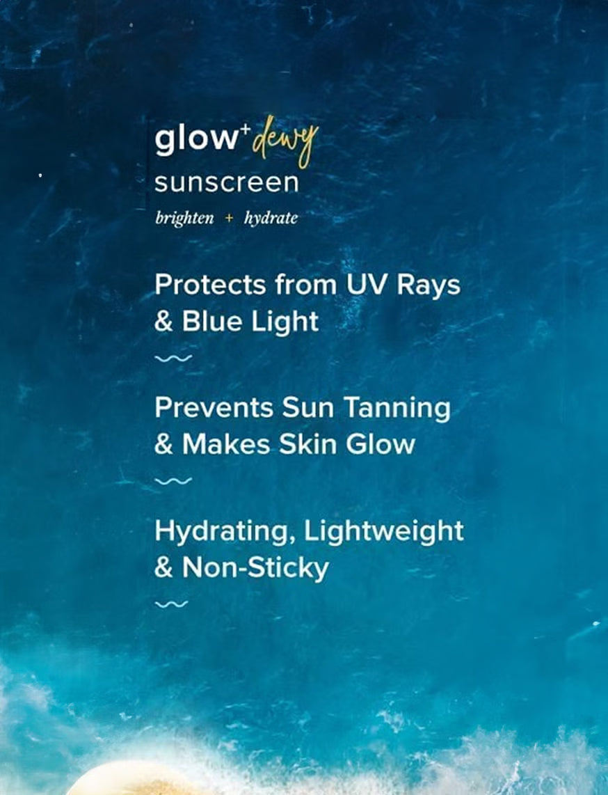 Introducing the Glow+ Dewy Sunscreen, your ultimate protection against UVA, UVB, and blue light! With SPF 50 and PA++++, it shields your skin from harmful rays while preventing sun tanning. Infused with Hyaluronic Acid, this hydrating, lightweight, and non-sticky formula ensures your skin stays moisturized and comfortable. The water-light sunscreen penetrates easily, leaving no oily residue and is free from fragrance, color, and pore-clogging ingredients. Experience glowing skin with every application and embrace the sun confidently with the Glow+ Dewy Sunscreen.