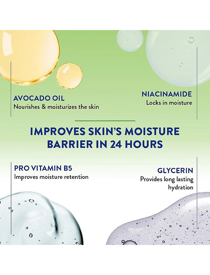 Aqua, Glycerin, Isopropyl Palmitate, Cetearyl Alcohol, Ceteareth-20, Panthenol, Niacinamide, Tocopheryl Acetate, Dimethicone, Persea Gratissima Oil, Helianthus Annuus Seed Oil, Pantolactone, Glyceryl Stearate, Sodium Benzoate, Benzyl Alcohol, Citric Acid.